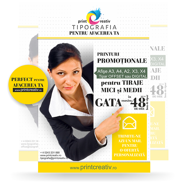 - poţi ridica comanda în maxim 48 de ore de la „bunul de tipar”, în funcţie de cantitatea solicitată şi gradul de ocupare a echipamentelor de producţie;
